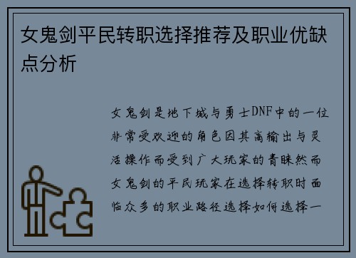 女鬼剑平民转职选择推荐及职业优缺点分析